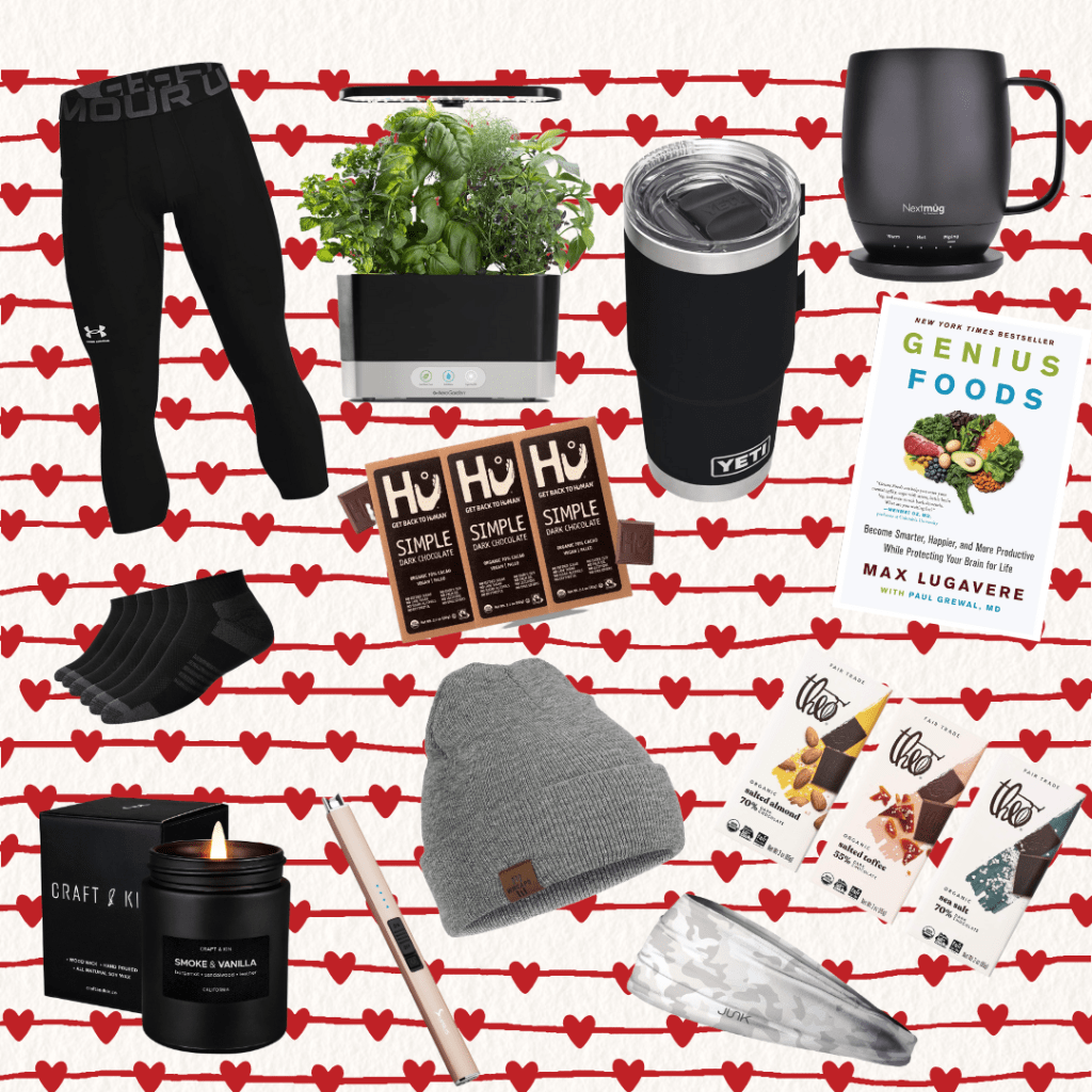 Amazon gift guide coming in hot for Valentine’s Day! This gift guide is based around some of my valentine’s favorite things. We got an herb garden for Christmas and it’s so convenient especially for condo living. My husband does CrossFit, so I added some workout gear, which I can never go wrong with. Some of his favorite chocolate bars – big cacao guy. This rechargeable electronic lighter is super cool to pair with a candle for your significant other. For those who love their coffee piping hot, this self heating mug is the perfect gift. I also included a cheaper option – my fave, a yeti. Last but not least on my gift list is a good read! My husband just finished reading this book – an easy read and may just convince you to change some of your eating habits!